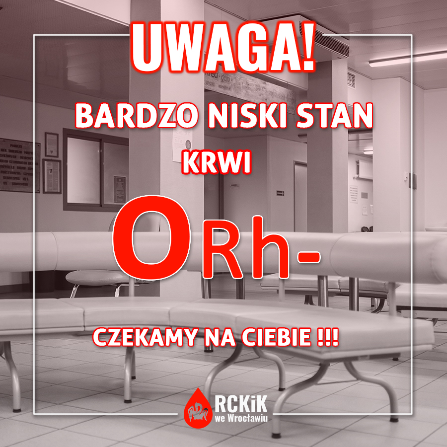 Regionalne Centrum Krwiodawstwa i Krwiolecznictwa im. prof. dr hab. Tadeusza Dorobisza we Wrocławiu przy ul. Czerwonego Krzyża 5/9 pilnie prosi mieszkańców Wrocławia i okolic do zgłaszania się do oddawania krwi.