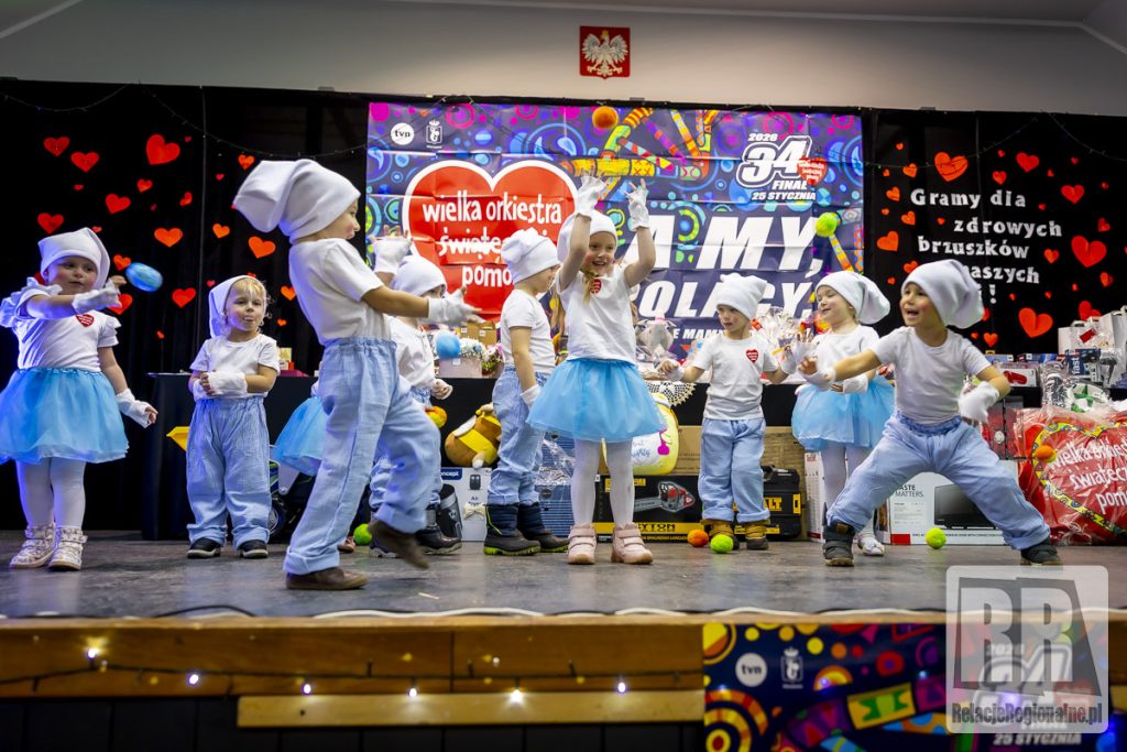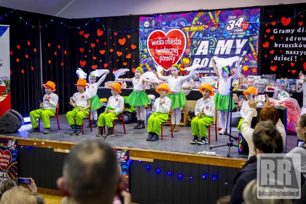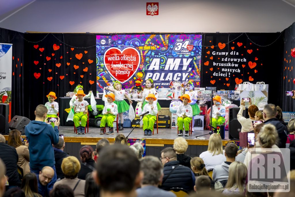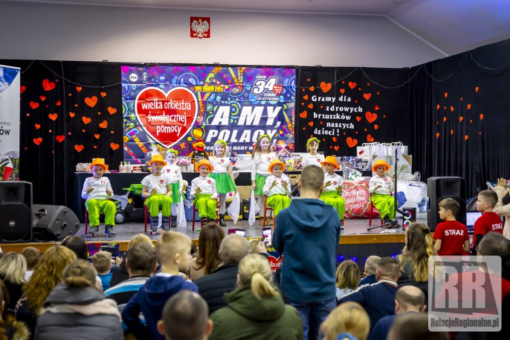 W Domu Kultury w Marciszowie odbył się dziś 34. Finał Wielkiej Orkiestry Świątecznej Pomocy. W całej gminie wolontariusze prowadzą zbiórkę. W Domu Kultury odbywają się koncerty, licytacje oraz inne wydarzenia towarzyszące. Tegoroczny finał przebiega pod hasłem „Zdrowe brzuszki naszych dzieci”. Celem zbiórki jest wsparcie diagnostyki i leczenia chorób przewodu pokarmowego u najmłodszych pacjentów. Zebrane środki zostaną przeznaczone na wyposażenie oddziałów gastroenterologii dziecięcej oraz zakup specjalistycznego sprzętu medycznego. Imprezę uświetnił występ wszystkich grup przedszkolnych Zespołu Szkolno-Przedszkolnego w Marciszowie, pokaz Zumby w wykonaniu grupy Natalii Kaczmarczyk, pokaz udzielania pierwszej pomocy w wykonaniu OSP Marciszów, występ wokalny Mai Oleśków i Agi Granosik. Panie z Rady Rodziców ZSP przygotowały przepyszne ciasta a Koła Gospodyń Dobrem Tkane i Gospochy lokalne przysmaki. Nasi strażacy z OSP wozili dzieci jednym z bojowych wozów strażackich, a grupa MDP przygotowała strażacką pajdę chleba ze smalcem i malowanie ciał pod kierunkiem Anny Zdunek. Oprócz tego pięć zespołów siatkarskich rozegrało Turniej Siatkarski Sołectw Gminy Marciszów o Puchar Wójta w ramach WOŚP. Wygrała drużyna z Marciszowa, następnie z Wieściszowic, Sędzisławia, Ciechanowic i Świdnika. Przeprowadzono loterię fantową i licytację ponad 90 rzeczy przekazanych na ten cel od darczyńców. Wszystkim bardzo serdecznie dziękujemy! Informujemy, że po wstępnym przeliczeniu zebranych pieniędzy uzyskaliśmy kwotę około 48 tys. zł. Wielkie, wielkie dzięki. Wielkie podziękowania należą się również naszym wolontariuszkom: Lenie Leder, Julii Janiszewskiej i Mai Płaszczyńskiej, które zbierały pieniążki na terenie Marciszowa.